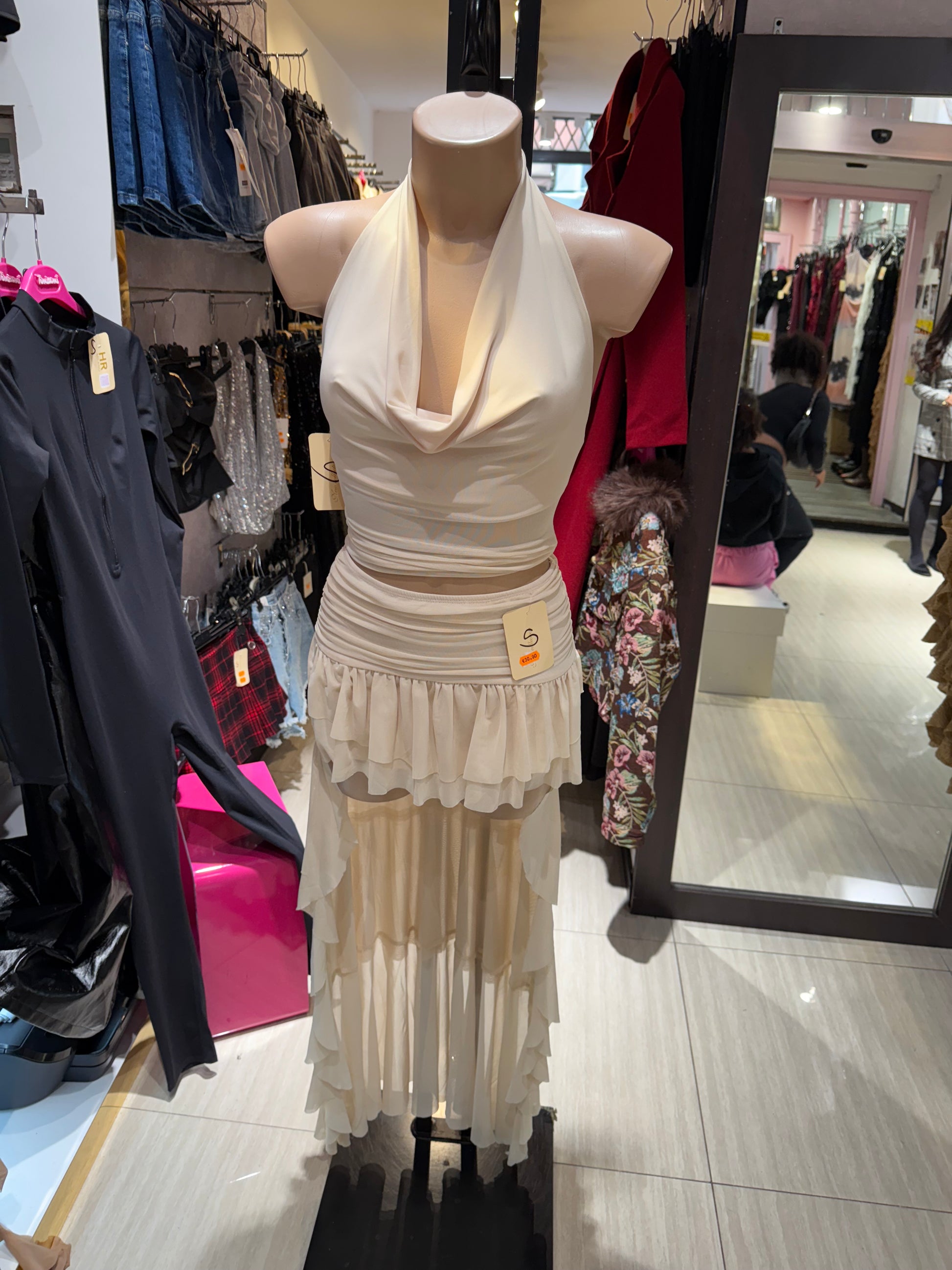 Un completo top e gonna raffinato che unisce linee morbide e dettagli sofisticati, Tessuti leggeri e ispirazione etnica per un look libero e autentico.