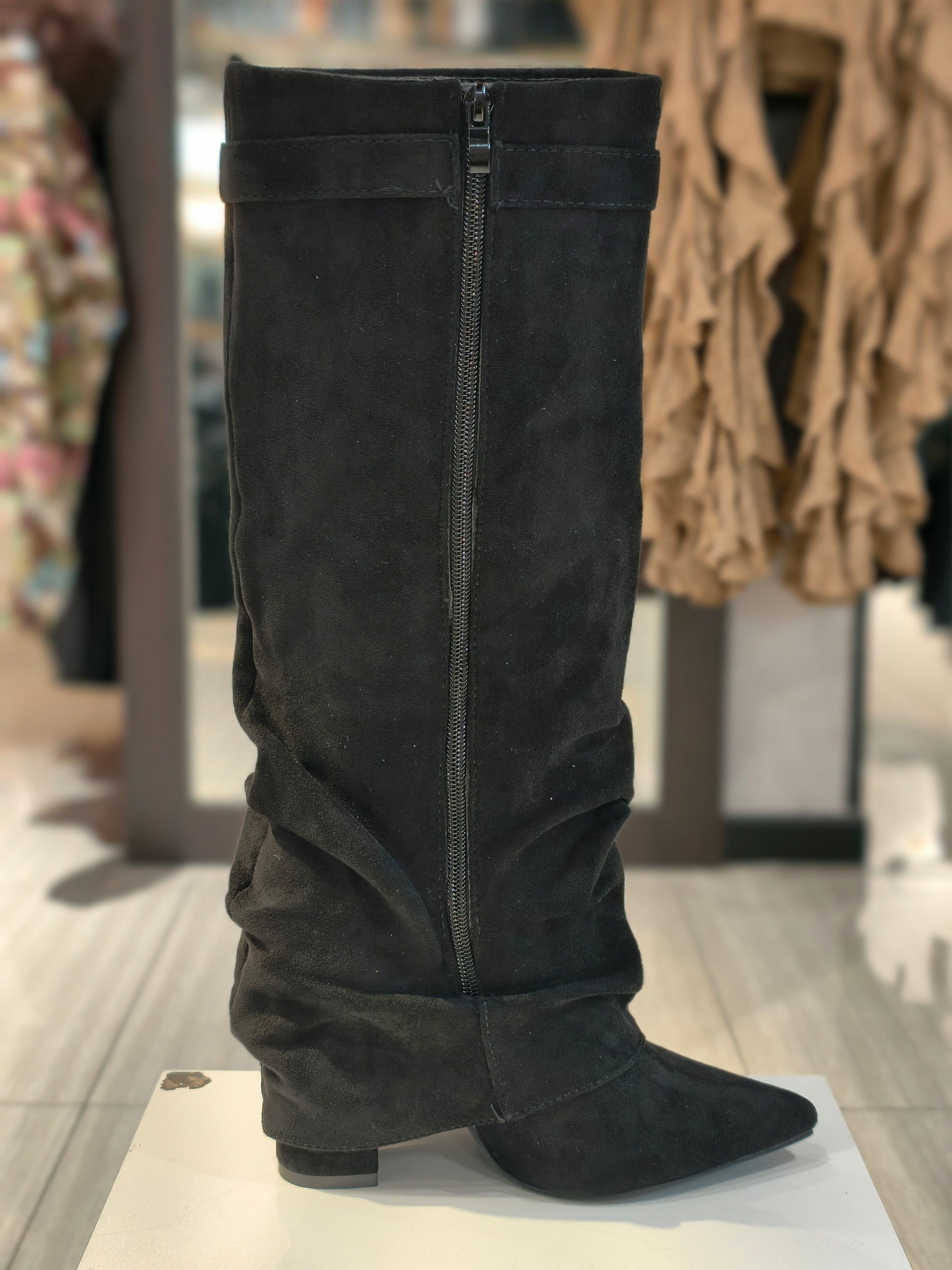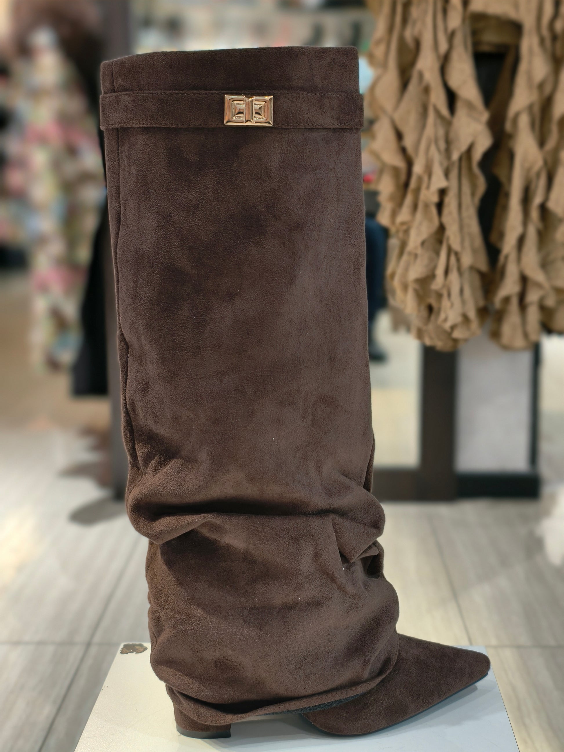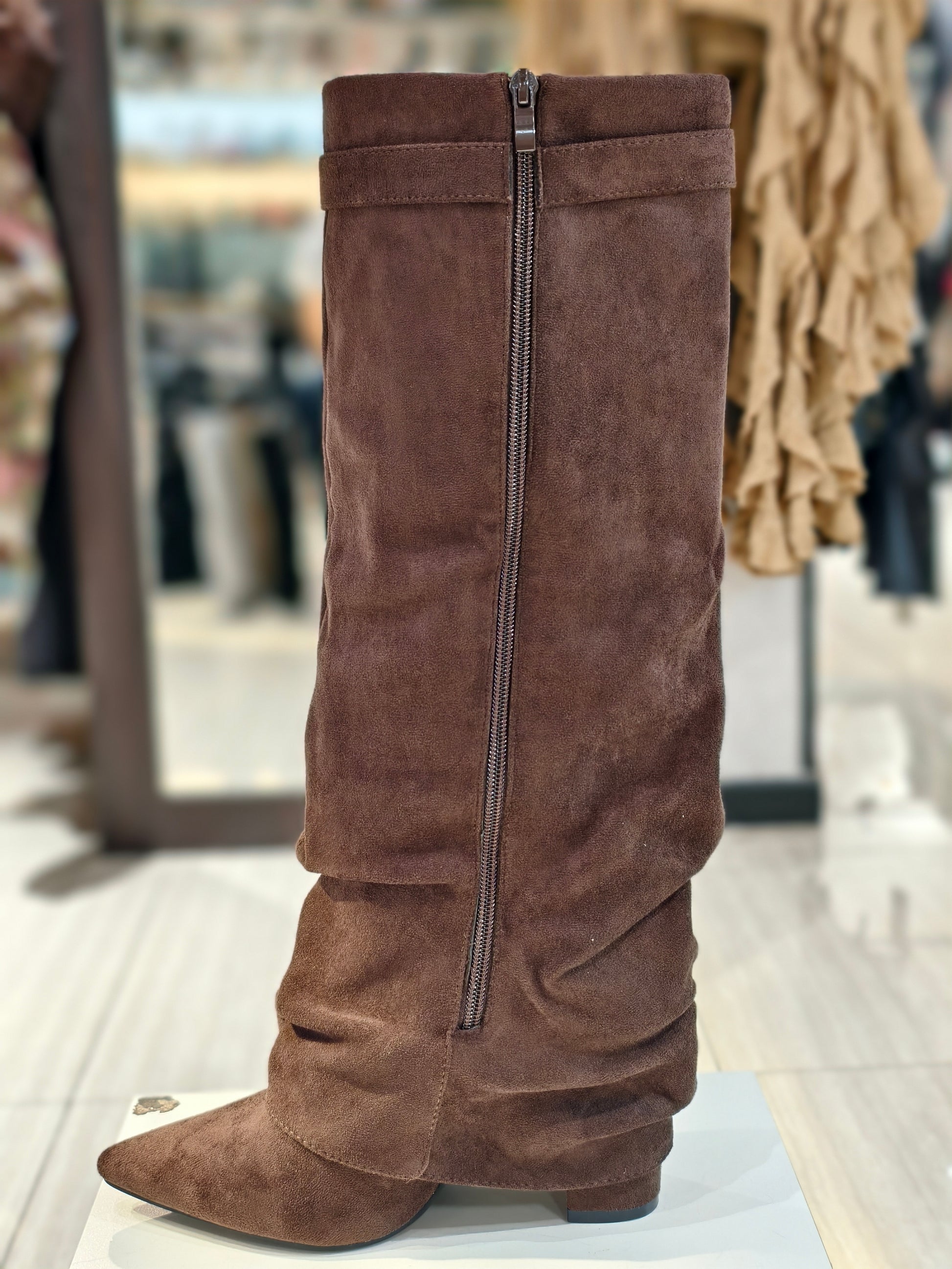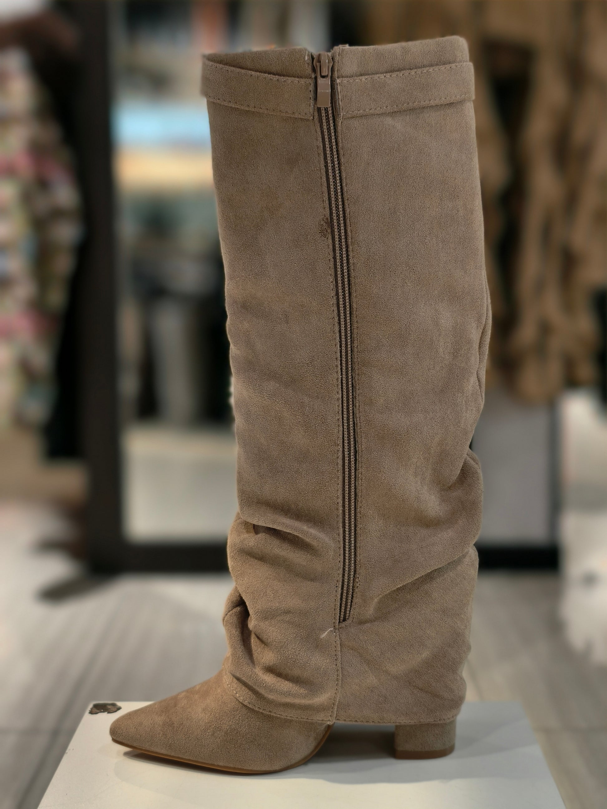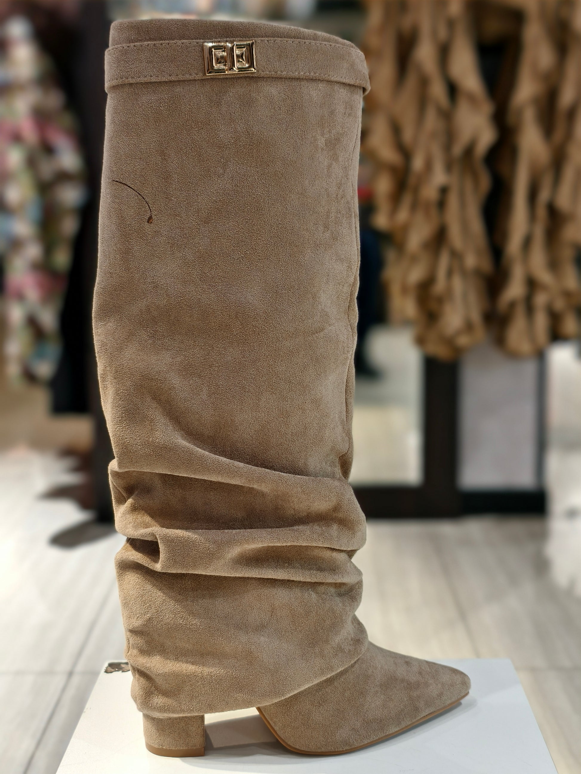 Stivali arriciati camoscio