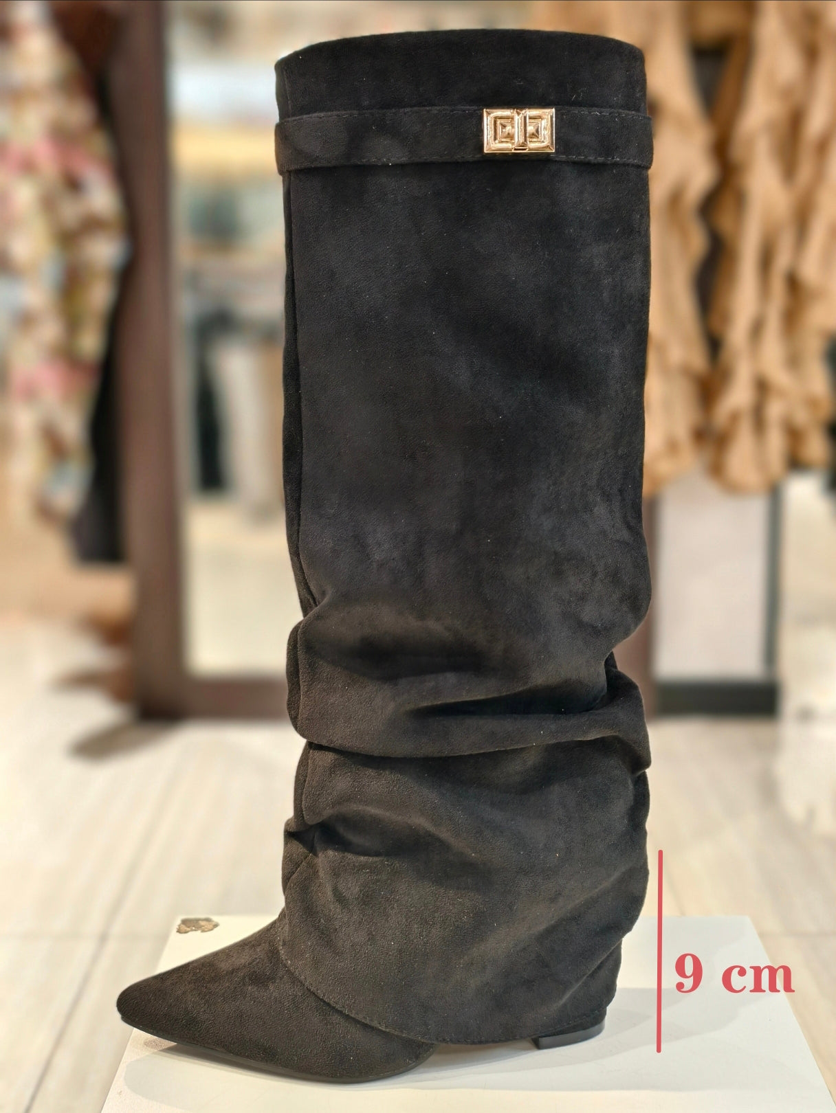 Stivali in camoscio arricciati Tacco da 9 cm