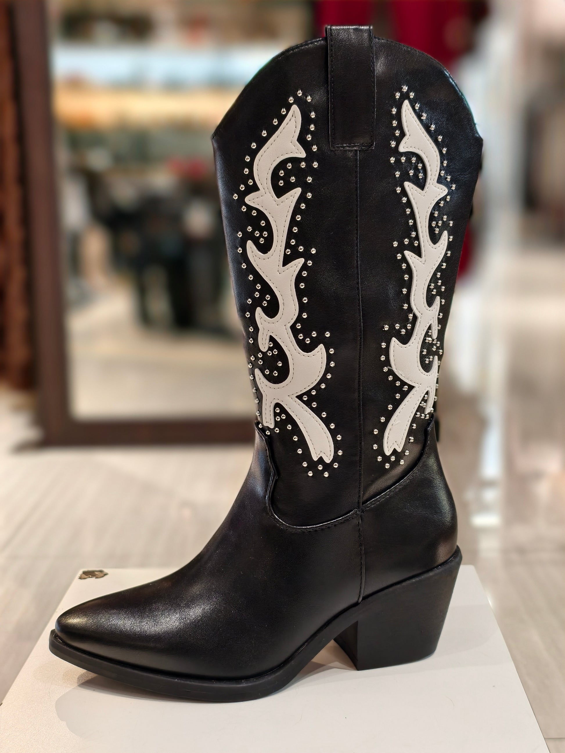 Stivali texani bassi con disegno bianco